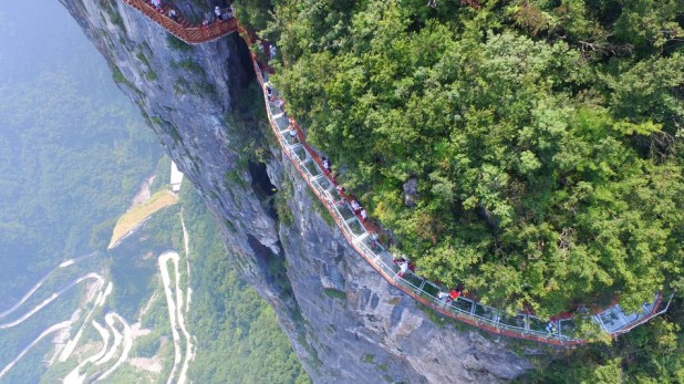 Çin’de yeni bir yürüyüş yolu açıldı. Ancak bu yürüyüş yolu, yüksekliği ve parkuru ile akla ilk gelen cinsten bir yol değil. Hunan Zhangjiajie doğal parkın içinde bulunan Tianmen Dağı üzerine 100 metre uzunluğunda oluşturulan yürüyüş yolu tümüyle camdan yapılı.