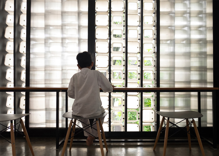 Shau mimarlık ofisi Endonezya ülkesinin genelinde okuryazarlık oranını artırmak amacıyla farklı bir tasarıma imza attı. Tasarladıkları özel kütüphanenin inşasına ilk etapta şeffaf kavanozları materyal olarak seçen mimarlar malzeme sıkıntısı yaşadıklarında çözümü kullanılmış dondurma kaplarında buldu. 2.000 adet boş dondurma kapları ile yarattıkları mikro ölçekli kütüphane daha da yaygınlaştırılması planlanan birçok kütüphanenin ilkini oluşturmakta.