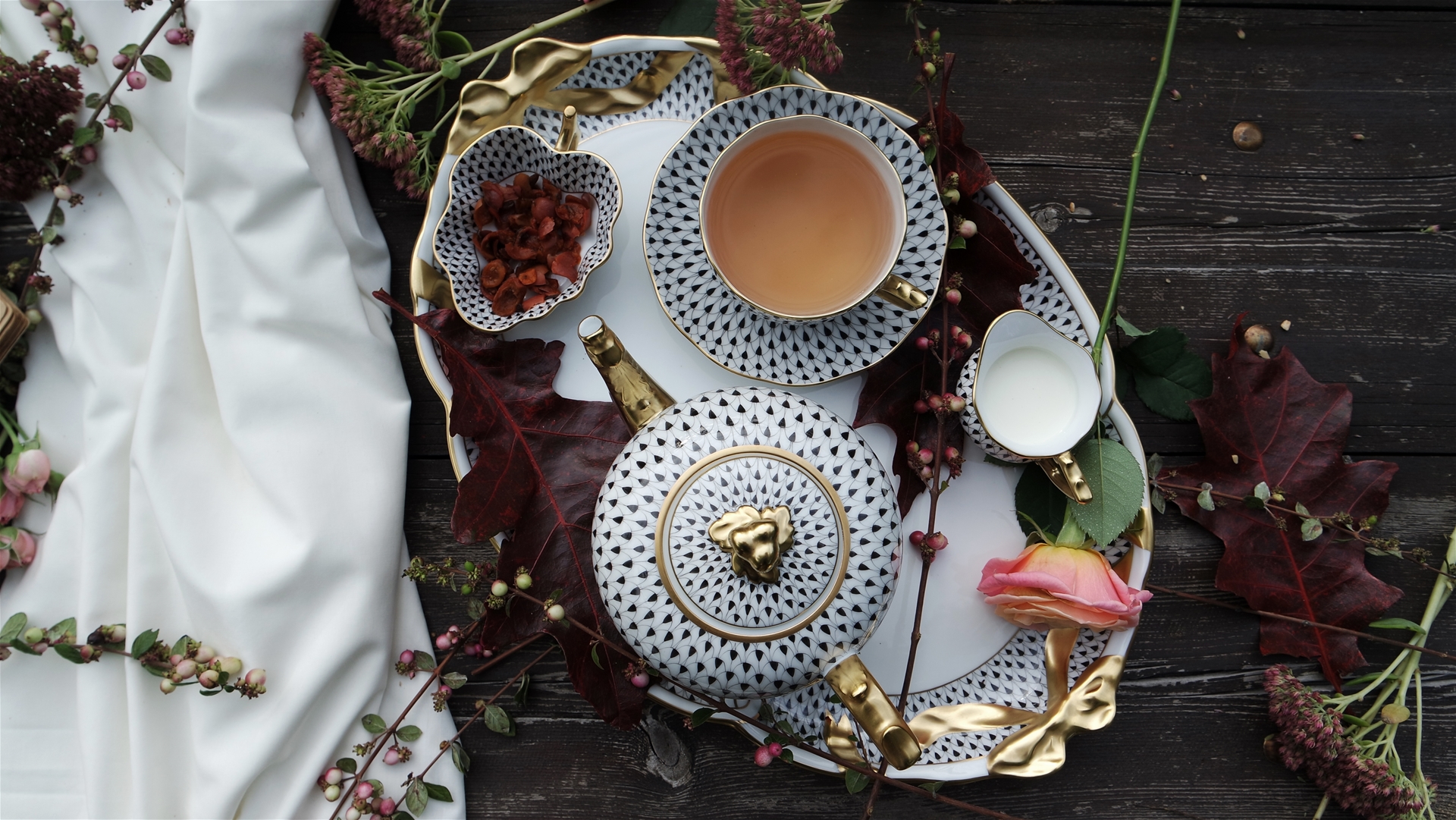 Herend Porselen çay ve kahve fincanlarından, bardak ve kadehlere, şekerlikten servis tepsisine kadar her türlü servis ürünü.
