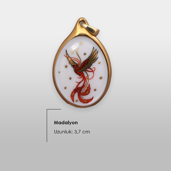 Bu eşsiz madalyon, Herend Porselen'in yepyeni Anka Kuşu figürü ile elle tasarlandı. Uzunluğu 3,7 cm olan, 24 ayar altın işlemeli bu harika madalyon, özel tasarımlı kutusu içinde evinize geliyor.