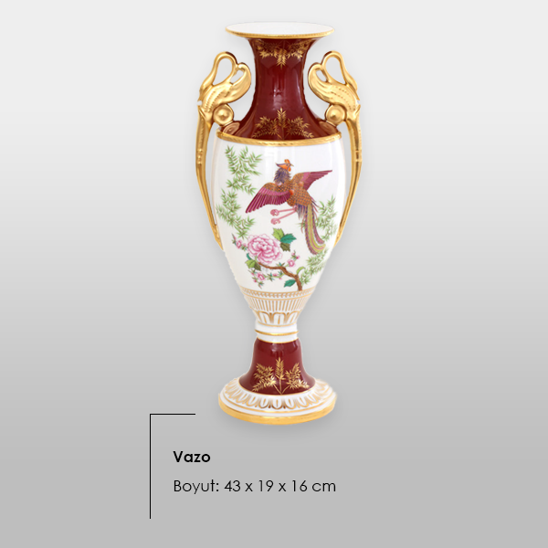 Dekoratif ürün tasarımında dünya markası olan Herend Porselen’in vazolarının güzelliği de Anka Kuşu kadar efsanedir. Sadece 50 adetle sınırlı olan bu 24 ayar altın işlemeli harika vazonun ölçüleri ise 43 x 19 x 16 cm’dir.