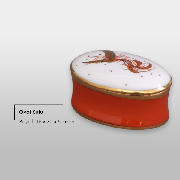 Herend’in Anka Kuşu - Phoenix Koleksiyonu’nda yerini alan bu oval kutu evinizin dekorasyonuna renk katmak için tasarlandı. 15 x 70 x 50 mm boyutlarında üretilen bu el yapımı nadide eser 24 ayar altın işlemelerle süslüdür.