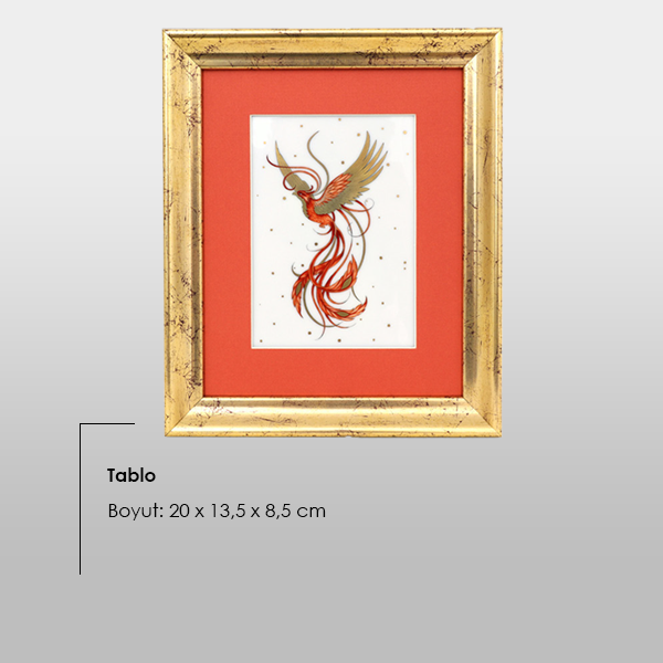 Bu tablo, Herend ressamları tarafından efsanevi Anka Kuşu’nun yeniden doğuşunun ince işçilikle tasvir edildiği harika bir eserdir. Boyutları ise: 20 x 13,5 x 8,5 cm’dir.