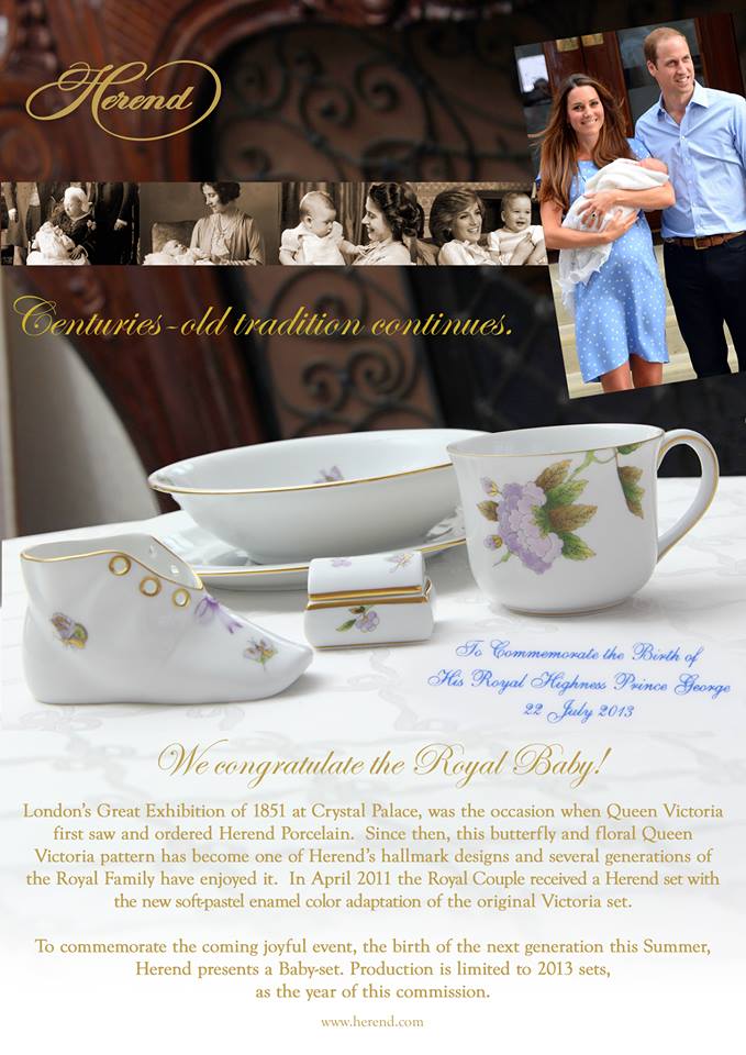 Herend, bu yazın neşeli olayı olan Kraliyet Ailesinin yeni bebeğinin doğumunun anısına da yeni bir bebek seti çıkarmıştır. Bu set sadece 2013 adet olarak sınırlı üretilecektir.