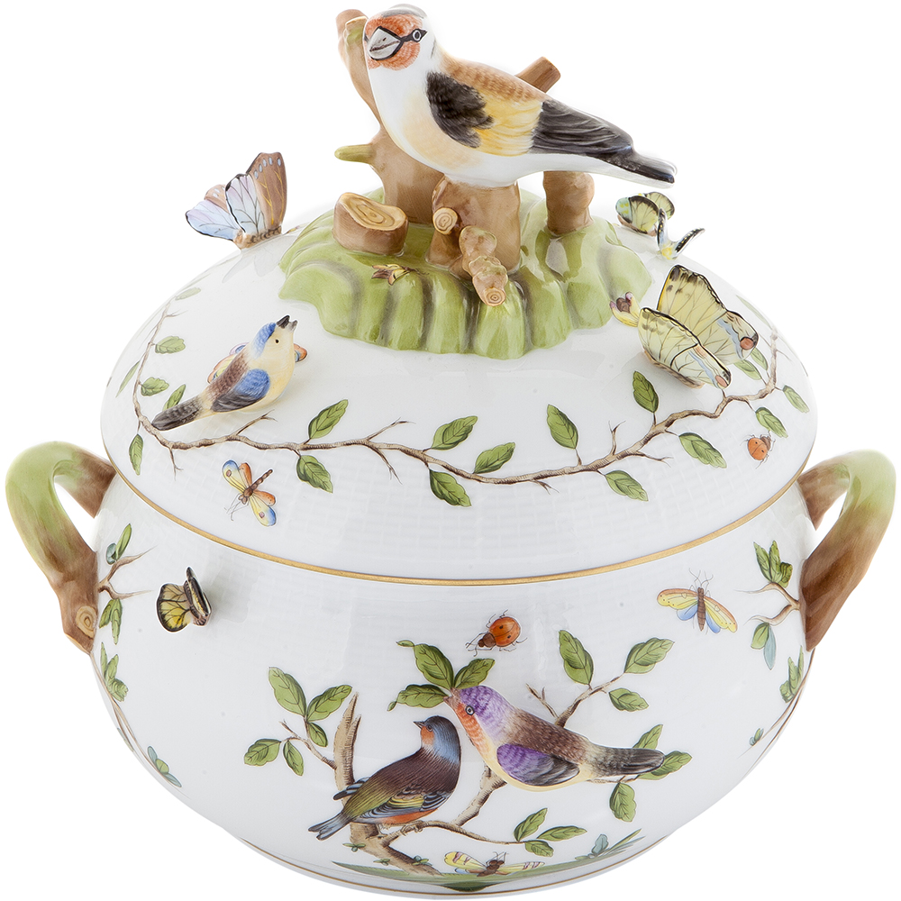 Rothschild serisinin kuş ve kelebek desenleri minik birer biblo olarak objenin üzerine ayrıca işlenmiştir.