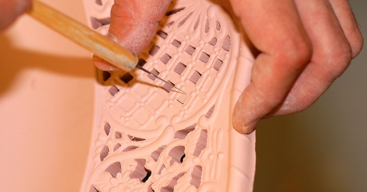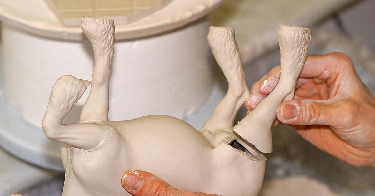 Biblolar için porselen ürünün negatifi alçı kalıplar kullanılarak bir heykeltraş titizliğiyle hazırlanır.