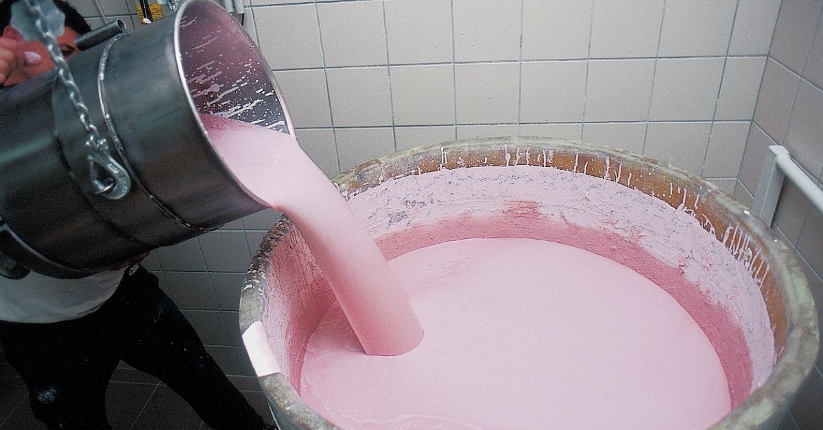 Hammaddeler su ile karıştırılarak iki çeşit macun elde edilir: Bu fotoğraf viskoz fırlatma macununun preslenmesini gösteriyor
