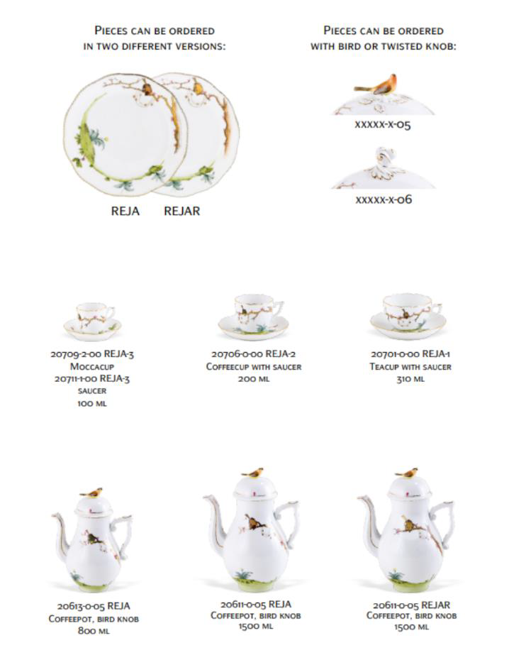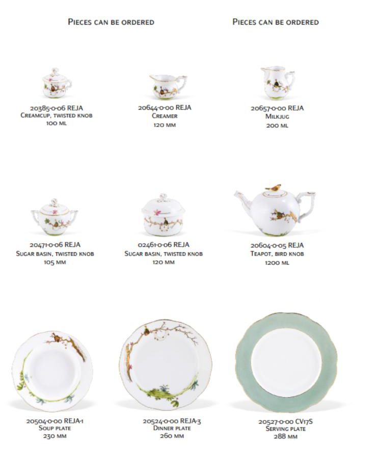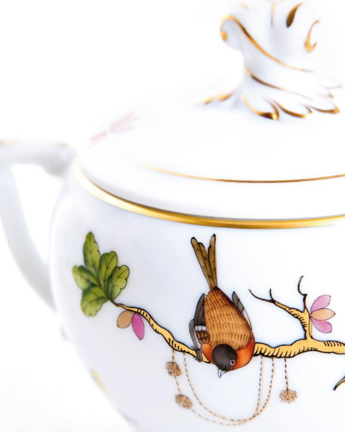 Desenin kullanıldığı takımlarda yer alan çaydanlık, kahvedanlık, sütlük gibi parçaların kapaklarındaki tutamaklarda yer alan kuş formunda figürinler ve birbirine sarılmış dalları çağrıştıran burgular Herend sanatçılarının desen kadar form konusunda da ne kadar yaratıcı ve yetenekli olduklarının bir göstergesi.