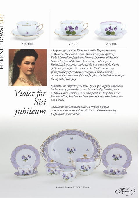 Bu önemli olayın yıldönümünü kutlamak için Herend,VIOLET kolleksiyonunu Sissi’nin favori çiçeğini belirterek,gururla takdim eder.