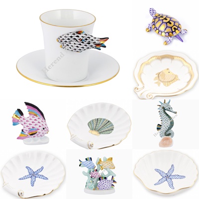 Herend deniz temalı biblo,fincan ve küçük servis tabakları ile eviniz renklendirebilir Herend havasını yaşatabilirsiniz.