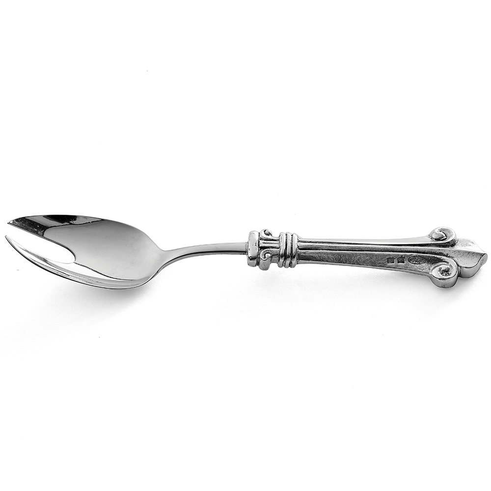 Kalay salata servis çatalı. Kalay sofra koleksiyonu ile masalarınıza doğal bir güzellik katın. Salata servis çatalınızı, yemek tabakları, suplalar, cam-kalay tatlı tabakları, ekmek tabakları, aperitif tabakları, kaseler ve yemek takımının farklı parçaları ile tamamlayabilirsiniz. Kalay takımınızı oluştururken, tekli olarak seçebilir arzunuza göre set oluşturabilirsiniz. Ayrıca birbirinden farklı desen ve formlardaki servis parçalarını ve sofra aksesuarlarını birbirleri ile karıştırıp kendinize özel sizi yansıtan bir sofra kurabilirsiniz.