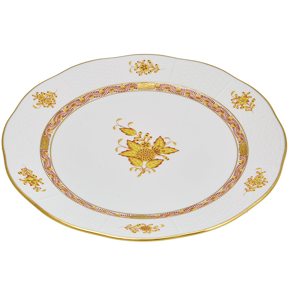 Başlangıç tabağı, APPONYI desen, birbirinden özel dekor ve desenlere sahip el boyaması Herend Porselen koleksiyonu ile sofralarınızı zenginleştirin. 25.5 cm çapında başlangıç tabağınızı, ana yemek tabakları, porselen tatlı tabakları, porselen salata ve ekmek tabakları, kaseler ve yemek takımının farklı parçaları ile tamamlayabilirsiniz. Herend porselen yemek takımınızı oluştururken, takım parçalarınızı tekli olarak seçebilir arzunuza göre set oluşturabilirsiniz. Ayrıca birbirinden farklı desen ve dekorları da karıştırabilirsiniz. Bu tabağın çeşitli servis tabakları ve servis parçaları da mevcuttur.