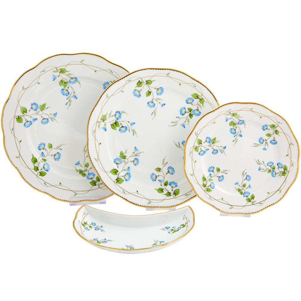 Başlangıç tabağı, NYON desen, birbirinden özel dekor ve desenlere sahip el boyaması Herend Porselen koleksiyonu ile sofralarınızı zenginleştirin. 26 cm çapında başlangıç tabağınızı, ana yemek tabakları, porselen tatlı tabakları, porselen salata ve ekmek tabakları, kaseler ve yemek takımının farklı parçaları ile tamamlayabilirsiniz. Herend porselen yemek takımınızı oluştururken, takım parçalarınızı tekli olarak seçebilir arzunuza göre set oluşturabilirsiniz. Ayrıca birbirinden farklı desen ve dekorları da karıştırabilirsiniz. Bu tabağın çeşitli servis tabakları ve servis parçaları da mevcuttur.