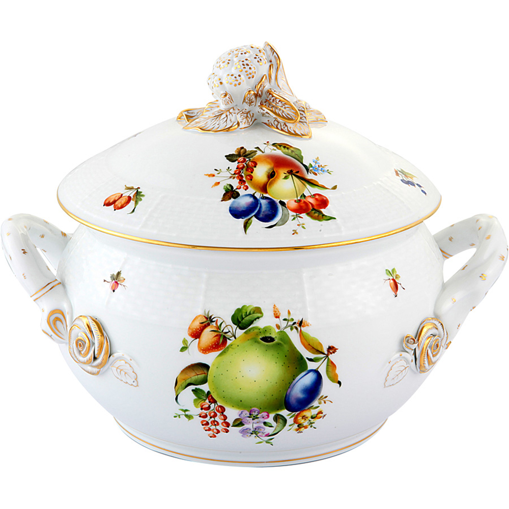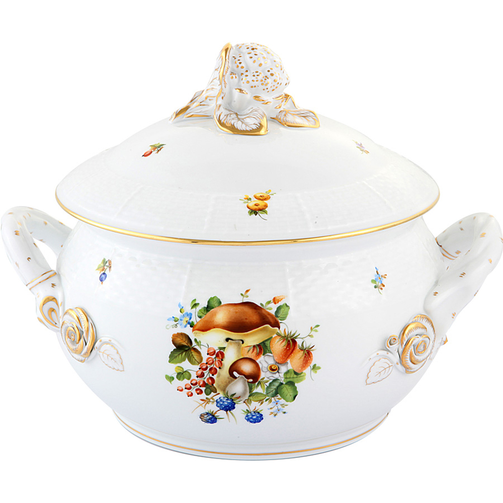 Çorba servisi, VERGER desen, birbirinden özel dekor ve desenlere sahip el boyaması Herend Porselen koleksiyonu ile sofralarınızı zenginleştirin. Servis parça ve tabaklarını değişik boylarda yemek tabakları ile tamamlayabilirsiniz. Herend porselen yemek takımınızı oluştururken, takım parçalarınızı tekli olarak seçebilir arzunuza göre set oluşturabilirsiniz. Ayrıca birbirinden farklı desen ve dekorları da karıştırabilirsiniz. Bu servis parçasının yemek takımı, büyük, küçük, renkli, çeşitli servis tabakları, çorbalık, meze tabakları, oval ve yuvarlak servisleri, kare servisleri, salata servisleri, pilav servisi, sebze servisi, kaseler ve kapaklı servis parçaları mevcuttur.