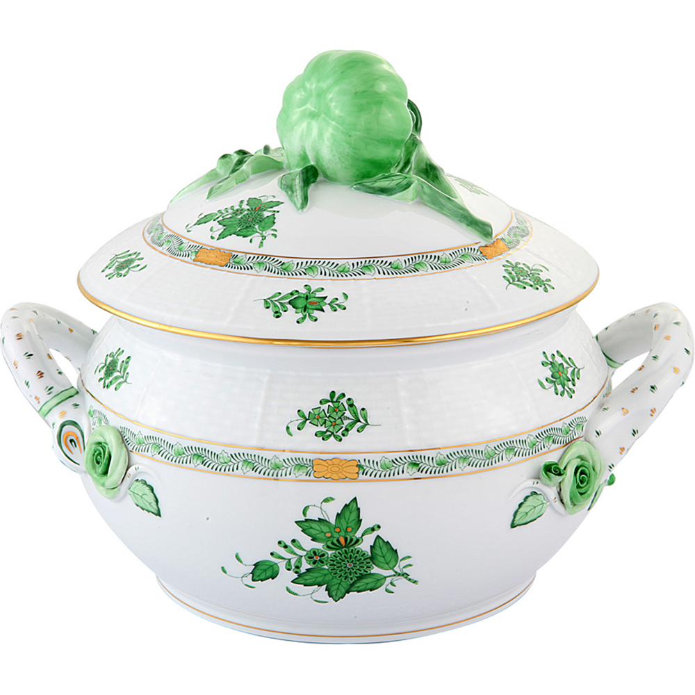 Çorba servisi, APPONYI desen, birbirinden özel dekor ve desenlere sahip el boyaması Herend Porselen koleksiyonu ile sofralarınızı zenginleştirin. Servis parça ve tabaklarını değişik boylarda yemek tabakları ile tamamlayabilirsiniz. Herend porselen yemek takımınızı oluştururken, takım parçalarınızı tekli olarak seçebilir arzunuza göre set oluşturabilirsiniz. Ayrıca birbirinden farklı desen ve dekorları da karıştırabilirsiniz. Bu servis parçasının yemek takımı, büyük, küçük, renkli, çeşitli servis tabakları, çorbalık, meze tabakları, oval ve yuvarlak servisleri, kare servisleri, salata servisleri, pilav servisi, sebze servisi, kaseler ve kapaklı servis parçaları mevcuttur.