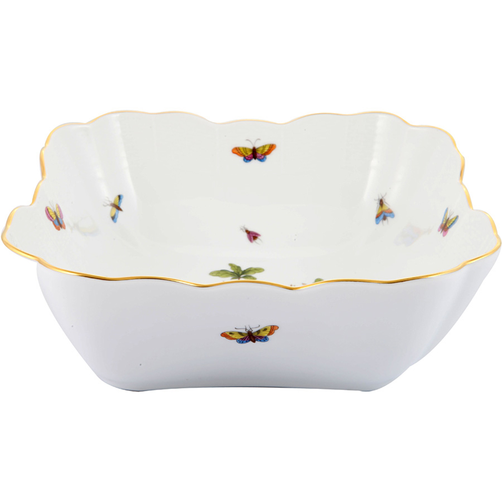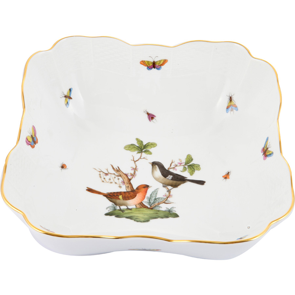 Kare Servis, ROTHSCHILD desen, birbirinden özel dekor ve desenlere sahip el boyaması Herend Porselen koleksiyonu ile sofralarınızı zenginleştirin. Servis parça ve tabaklarını değişik boylarda yemek tabakları ile tamamlayabilirsiniz. Herend porselen yemek takımınızı oluştururken, takım parçalarınızı tekli olarak seçebilir arzunuza göre set oluşturabilirsiniz. Ayrıca birbirinden farklı desen ve dekorları da karıştırabilirsiniz.Bu kare servis tabağının yemek takımı, büyük, küçük, renkli, çeşitli servis tabakları, kulplu servis tabakları, çorbalık, meze tabakları, yuvarlak servisleri, salata servisleri, pilav servisi, sebze servisi, büyük küçük kaseleri ve kapaklı servis parçaları mevcuttur.