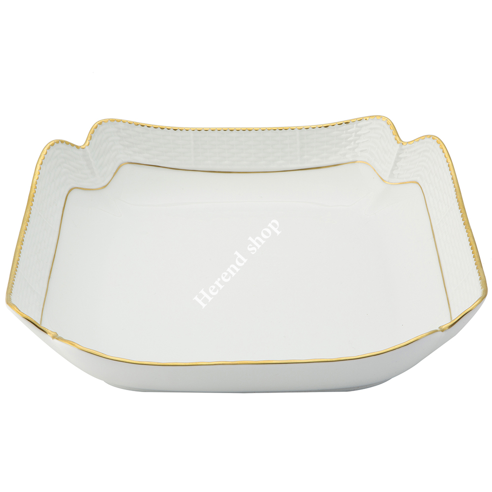 Kare servis, GOLDEN EDGE desen, birbirinden özel dekor ve desenlere sahip el boyaması Herend Porselen koleksiyonu ile sofralarınızı zenginleştirin. Servis parça ve tabaklarını değişik boylarda yemek tabakları ile tamamlayabilirsiniz. Herend porselen yemek takımınızı oluştururken, takım parçalarınızı tekli olarak seçebilir arzunuza göre set oluşturabilirsiniz. Ayrıca birbirinden farklı desen ve dekorları da karıştırabilirsiniz. Bu kare servis tabağının yemek takımı, büyük, küçük, renkli, çeşitli servis tabakları, kulplu servis tabakları, çorbalık, meze tabakları, yuvarlak servisleri, salata servisleri, pilav servisi, sebze servisi, büyük küçük kaseleri ve kapaklı servis parçaları mevcuttur.