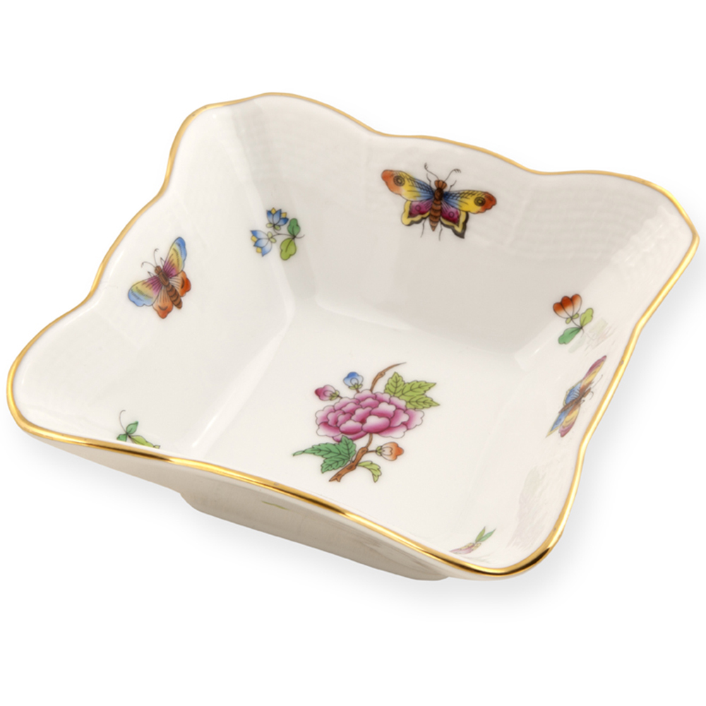 Salata tabakları ve kaseler, VICTORIA PAPILLONS ET FLEURS desen, birbirinden özel dekor ve desenlere sahip el boyaması Herend Porselen koleksiyonu ile sofralarınızı zenginleştirin. Ay formlu salata tabaklarını ve çeşitli boyutta salata kaselerini, porselen salata tabaklarını, yemek takımının farklı parçaları ile tamamlayabilirsiniz. Herend porselen yemek takımınızı oluştururken, takım parçalarınızı tekli olarak seçebilir arzunuza göre set oluşturabilirsiniz. Ayrıca birbirinden farklı desen ve dekorları da karıştırabilirsiniz. Bu tabağın ve kasenin çeşitli servis tabakları ve servis parçaları da mevcuttur.