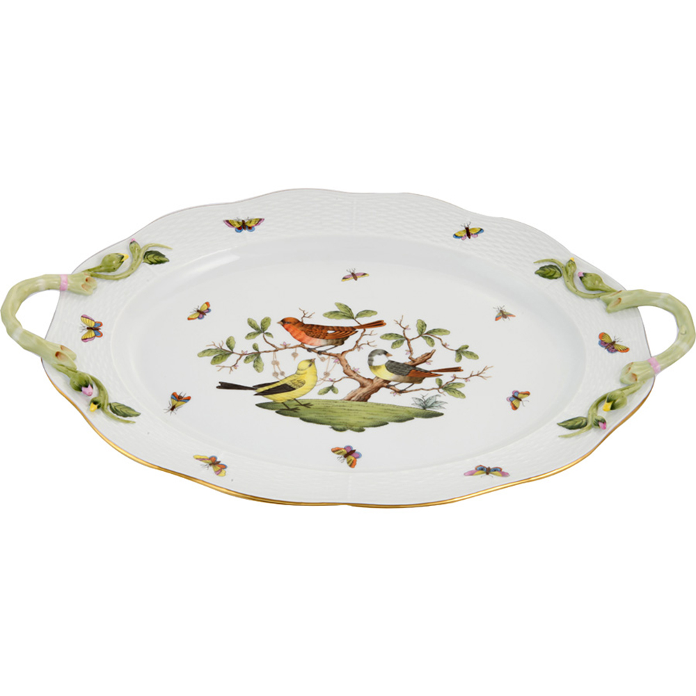 Oval servis , ROTHSCHILD desen , birbirinden özel dekor ve desenlere sahip el boyaması Herend Porselen koleksiyonu ile sofralarınızı zenginleştirin.Servis parça ve tabaklarını değişik boylarda yemek tabakları ile tamamlayabilirsiniz. Herend porselen yemek takımınızı oluştururken, takım parçalarınızı tekli olarak seçebilir arzunuza göre set oluşturabilirsiniz. Ayrıca birbirinden farklı desen ve dekorları da karıştırabilirsiniz. Bu oval servis tabağının yemek takımı, büyük, küçük, renkli , çeşitli servis tabakları, kulplu servis tabakları, çorbalık, meze tabakları, yuvarlak servisleri, kare servisleri, salata servisleri, pilav servisi, sebze servisi, büyük küçük kaseleri ve kapaklı servis parçaları mevcuttur.