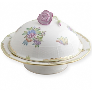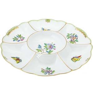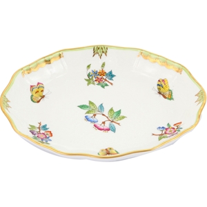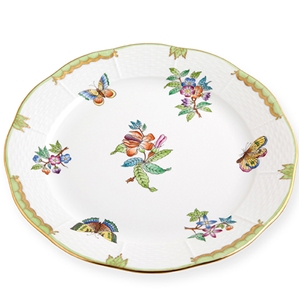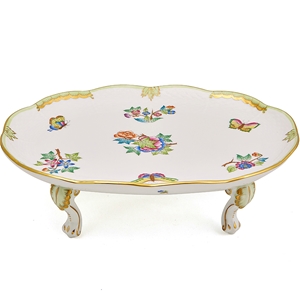 Oval servis, VICTORIA desen, birbirinden özel dekor ve desenlere sahip el boyaması Herend Porselen koleksiyonu ile sofralarınızı zenginleştirin. Servis parça ve tabaklarını değişik boylarda yemek tabakları ile tamamlayabilirsiniz. Herend Porselen yemek takımınızı oluştururken, takım parçalarınızı tekli olarak seçebilir arzunuza göre set oluşturabilirsiniz. Ayrıca birbirinden farklı desen ve dekorları da karıştırabilirsiniz. Bu oval servis tabağının yemek takımı, büyük, küçük, renkli, çeşitli servis tabakları, kulplu servis tabakları, çorbalık, meze tabakları, yuvarlak servisleri, kare servisleri, salata servisleri, pilav servisi, sebze servisi, büyük küçük kaseleri ve kapaklı servis parçaları mevcuttur.