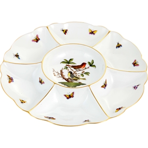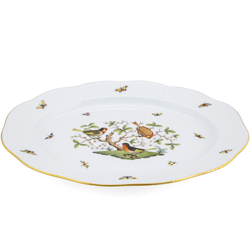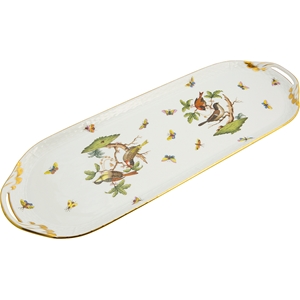 Oval servis , ROTHSCHILD desen , birbirinden özel dekor ve desenlere sahip el boyaması Herend Porselen koleksiyonu ile sofralarınızı zenginleştirin. Servis parça ve tabaklarını değişik boylarda yemek tabakları ile tamamlayabilirsiniz. Herend porselen yemek takımınızı oluştururken, takım parçalarınızı tekli olarak seçebilir arzunuza göre set oluşturabilirsiniz. Ayrıca birbirinden farklı desen ve dekorları da karıştırabilirsiniz. Bu oval servis tabağının yemek takımı, büyük, küçük, renkli, çeşitli servis tabakları, kulplu servis tabakları, çorbalık, meze tabakları, yuvarlak servisleri, kare servisleri, salata servisleri, pilav servisi, sebze servisi, büyük küçük kaseleri ve kapaklı servis parçaları mevcuttur.