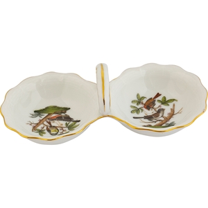 Oval servis, ROTHSCHILD desen, birbirinden özel dekor ve desenlere sahip el boyaması Herend Porselen koleksiyonu ile sofralarınızı zenginleştirin. Servis parça ve tabaklarını değişik boylarda yemek tabakları ile tamamlayabilirsiniz. Herend porselen yemek takımınızı oluştururken, takım parçalarınızı tekli olarak seçebilir arzunuza göre set oluşturabilirsiniz. Ayrıca birbirinden farklı desen ve dekorları da karıştırabilirsiniz. Bu oval servis tabağının yemek takımı, büyük, küçük, renkli, çeşitli servis tabakları, kulplu servis tabakları, çorbalık, meze tabakları, yuvarlak servisleri, kare servisleri, salata servisleri, pilav servisi, sebze servisi, büyük küçük kaseleri ve kapaklı servis parçaları mevcuttur.