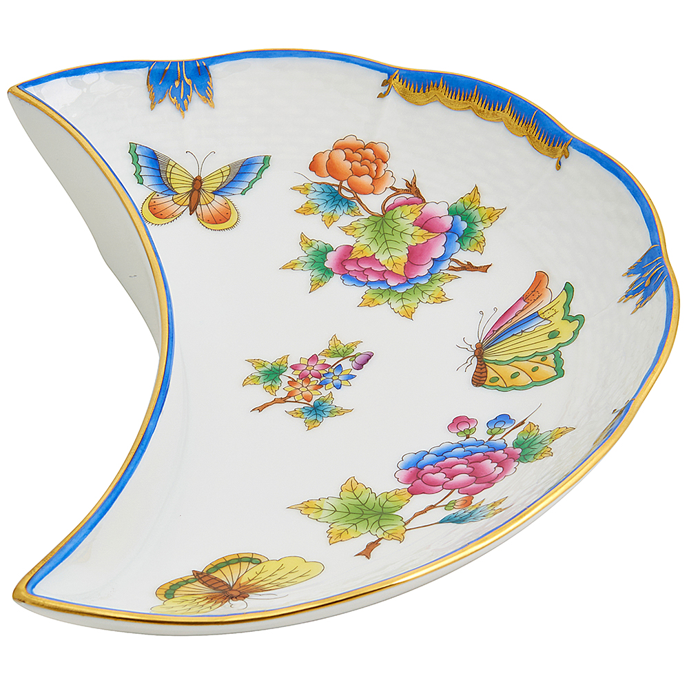 Salata tabakları ve kaseler, VICTORIA desen, birbirinden özel dekor ve desenlere sahip el boyaması Herend Porselen koleksiyonu ile sofralarınızı zenginleştirin. Ay formlu salata tabaklarını ve çeşitli boyutta salata kaselerini, porselen salata tabaklarını, yemek takımının farklı parçaları ile tamamlayabilirsiniz. Herend porselen yemek takımınızı oluştururken, takım parçalarınızı tekli olarak seçebilir arzunuza göre set oluşturabilirsiniz. Ayrıca birbirinden farklı desen ve dekorları da karıştırabilirsiniz. Bu tabağın ve kasenin çeşitli servis tabakları ve servis parçaları da mevcuttur.