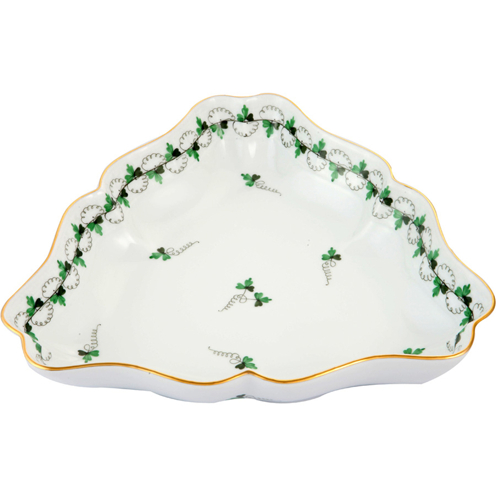 Üçgen servis, PERSIL desen, birbirinden özel dekor ve desenlere sahip el boyaması Herend Porselen koleksiyonu ile sofralarınızı zenginleştirin. Servis parça ve tabaklarını değişik boylarda yemek tabakları ile tamamlayabilirsiniz. Herend Porselen yemek takımınızı oluştururken, takım parçalarınızı tekli olarak seçebilir arzunuza göre set oluşturabilirsiniz. Ayrıca birbirinden farklı desen ve dekorları da karıştırabilirsiniz. Bu üçgen servis tabağının yemek takımı, büyük, küçük, renkli, çeşitli servis tabakları, kulplu servis tabakları, çorbalık, meze tabakları, yuvarlak servisleri, salata servisleri, pilav servisi, sebze servisi, büyük küçük kaseleri ve kapaklı servis parçaları mevcuttur. Bu ürünü ayrıca sehpalarınızın dekorasyonunda da kullanabilirsiniz.