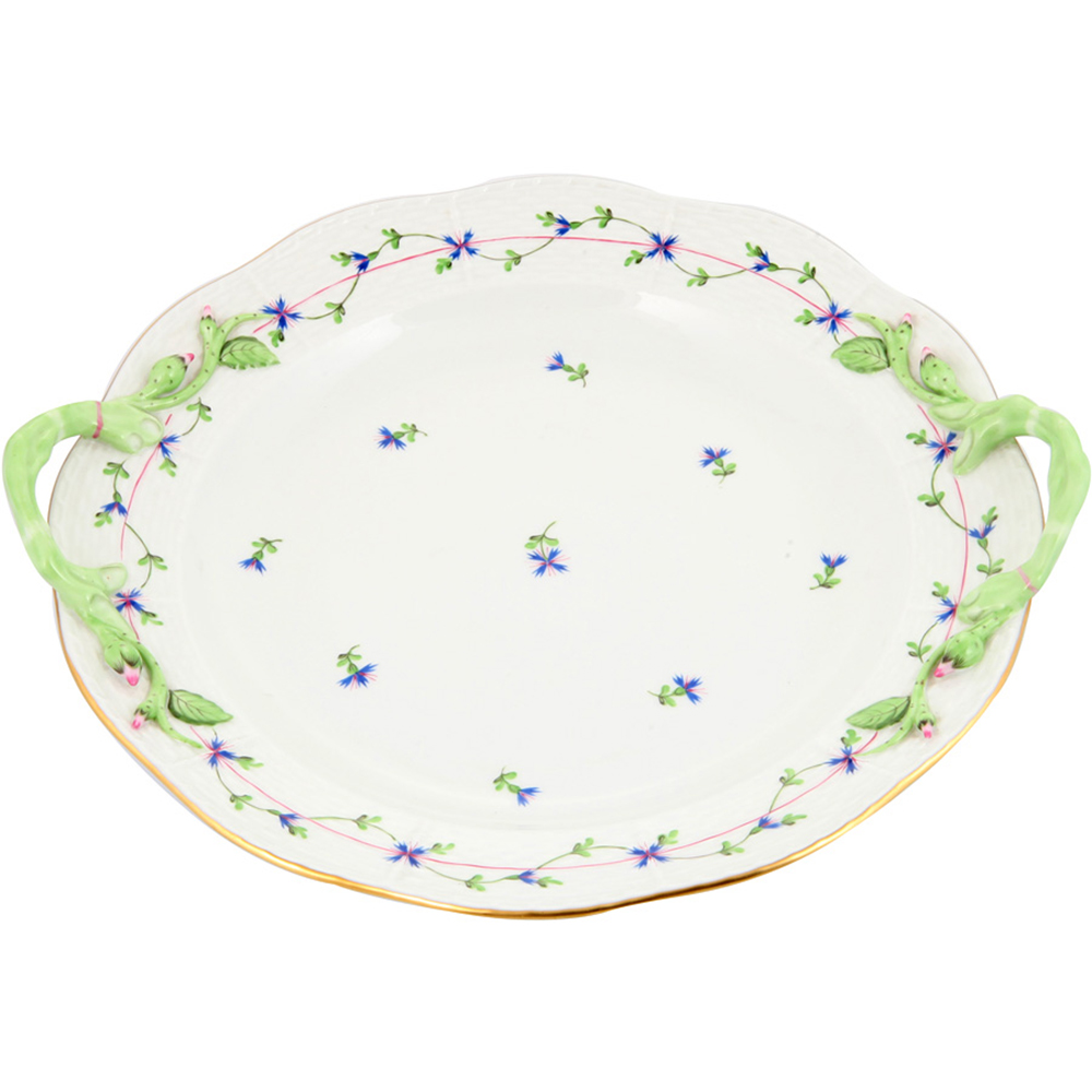 Yuvarlak servis , PETITS BLEUETS desen , birbirinden özel dekor ve desenlere sahip el boyaması Herend Porselen koleksiyonu ile sofralarınızı zenginleştirin. Servis parça ve tabaklarını değişik boylarda yemek tabakları ile tamamlayabilirsiniz. Herend porselen yemek takımınızı oluştururken, takım parçalarınızı tekli olarak seçebilir arzunuza göre set oluşturabilirsiniz. Ayrıca birbirinden farklı desen ve dekorları da karıştırabilirsiniz. Bu yuvarlak servis tabağının yemek takımı, büyük, küçük, renkli , çeşitli servis tabakları, kulplu servis tabakları, çorbalık, meze tabakları, yuvarlak servisleri, kare servisleri, salata servisleri, pilav servisi, sebze servisi, büyük küçük kaseleri ve kapaklı servis parçaları mevcuttur.